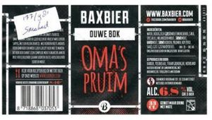 Het idee voor dit bokbier ontstond toen de brouwer onder de pruimenboom zat in oma’s tuintje. Oma’s pruim stond er goed bij en de vrucht was lekker sappig met een klein zuurtje. Wij konden niets anders doen dan hier een mooi goed gerijpt bier mee te maken. Dit bokbier dankt zijn complexe mout karakter aan drie verschillende graansoorten en acht verschillende soorten mout. (http://baxbier.com/omaspruim/).