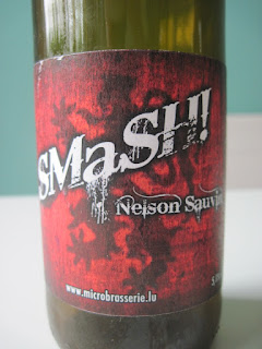SMASH! Nelson Sauvin (5,1%) is ook een bier van microbrassee lu Brasse L-1750. Het is een lichtpilskleurig bier met veel wit (neutraalsmakend) schuim. Het Nelson Sauvin hop heeft een alpha gehalte van 12,3%/ De kleur van het bier is 7,4 EBC en d ebitterheid is 71,5 IBU. Ik vind de bitterhei dvan het bier niet floraal, maar vooral als astringente wrange smaak in de afdronk, maar weer niet in de nasmaak.